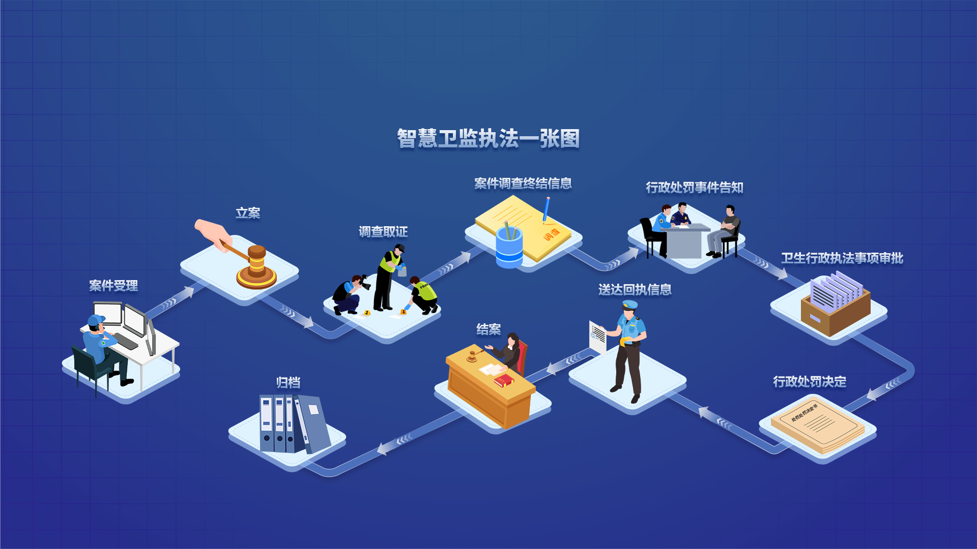 “智慧衛(wèi)監(jiān)綜合監(jiān)管服務(wù)管理系統(tǒng)”涵蓋監(jiān)督執(zhí)法應(yīng)用、非現(xiàn)場(chǎng)執(zhí)法應(yīng)用、碼上監(jiān)管、可視化駕駛艙、信息交換系統(tǒng)等內(nèi)容,實(shí)現(xiàn)加強(qiáng)衛(wèi)生監(jiān)督綜合執(zhí)法能力建設(shè),依法推進(jìn)衛(wèi)生監(jiān)督工作,不斷創(chuàng)新衛(wèi)生監(jiān)督執(zhí)法手段,提高衛(wèi)生監(jiān)督的監(jiān)管和應(yīng)急處置水平,通過建設(shè)智慧衛(wèi)監(jiān)系統(tǒng),將傳統(tǒng)現(xiàn)場(chǎng)監(jiān)管與非現(xiàn)場(chǎng)物聯(lián)網(wǎng)智能監(jiān)督監(jiān)測(cè)手段相結(jié)合,解決目前衛(wèi)生監(jiān)督機(jī)構(gòu)無法及時(shí)掌握和處置突發(fā)狀況的問題,做到在第一時(shí)間獲取現(xiàn)場(chǎng)數(shù)據(jù),在事件發(fā)生、升級(jí)前提前預(yù)警和處置,提高執(zhí)法效率。